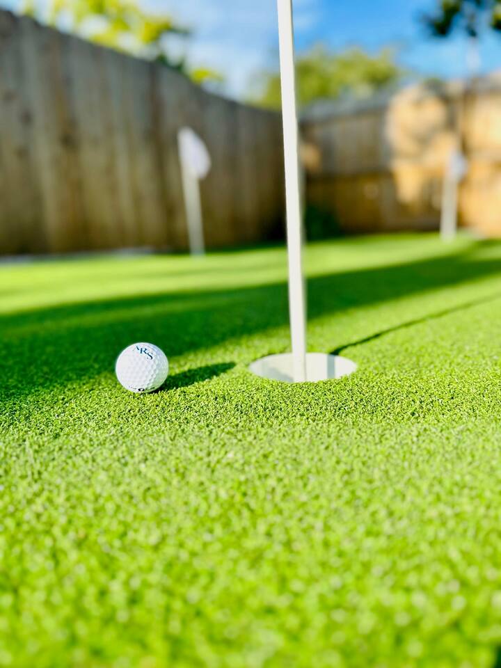 We were in town for our son’s wedding. This house suited us perfectly. It was well stocked with anything you could think of that you might need. The backyard was awesome. It was equipped with a beautiful fire pit, outdoor games and an amazing golf green! The seating and large trees were nice. I highly recommend this house.