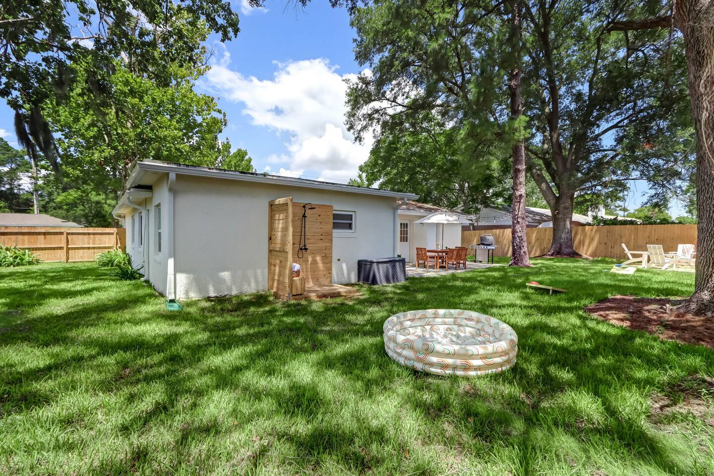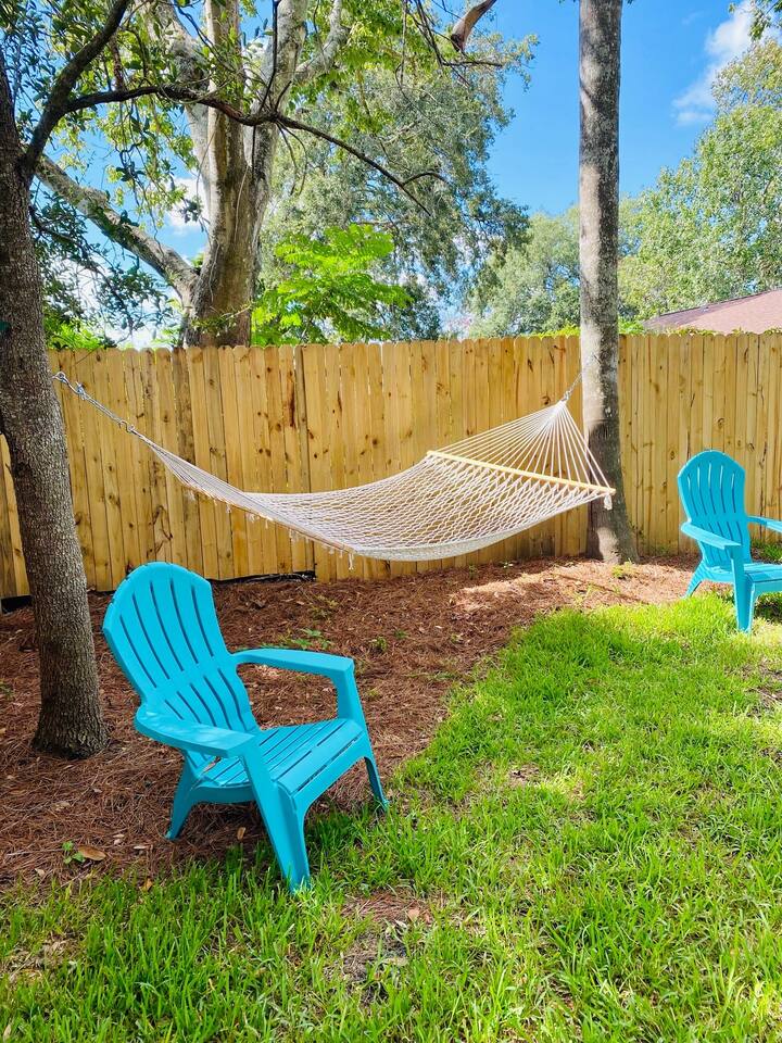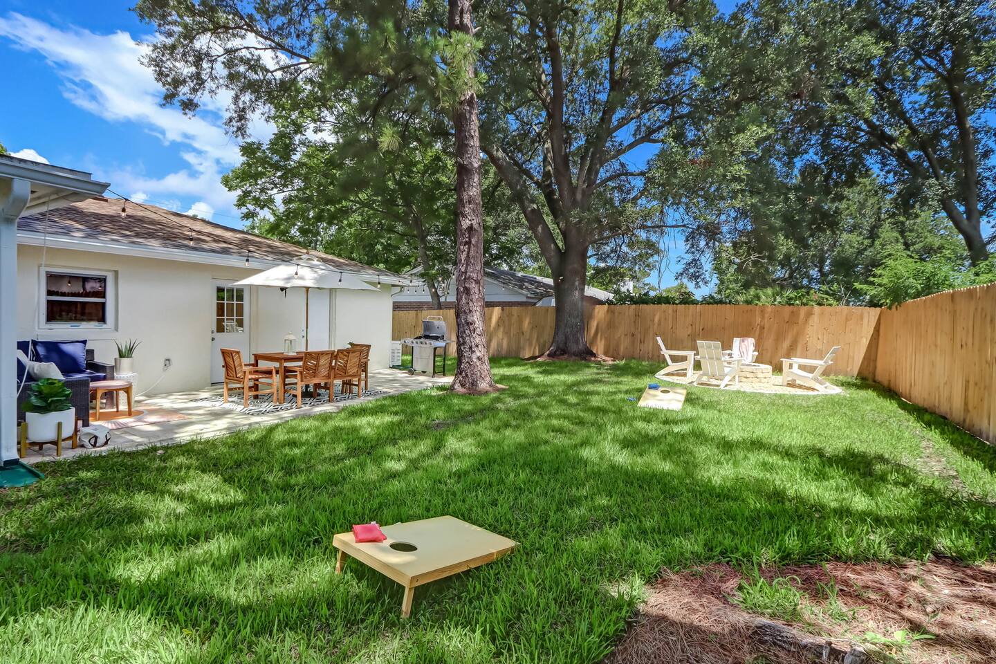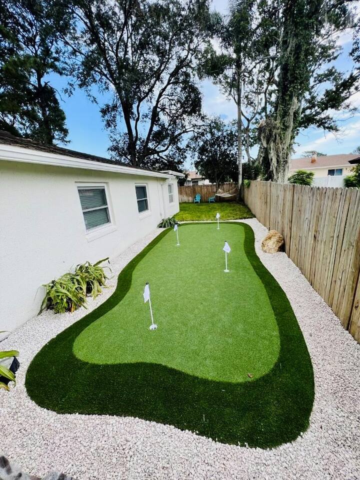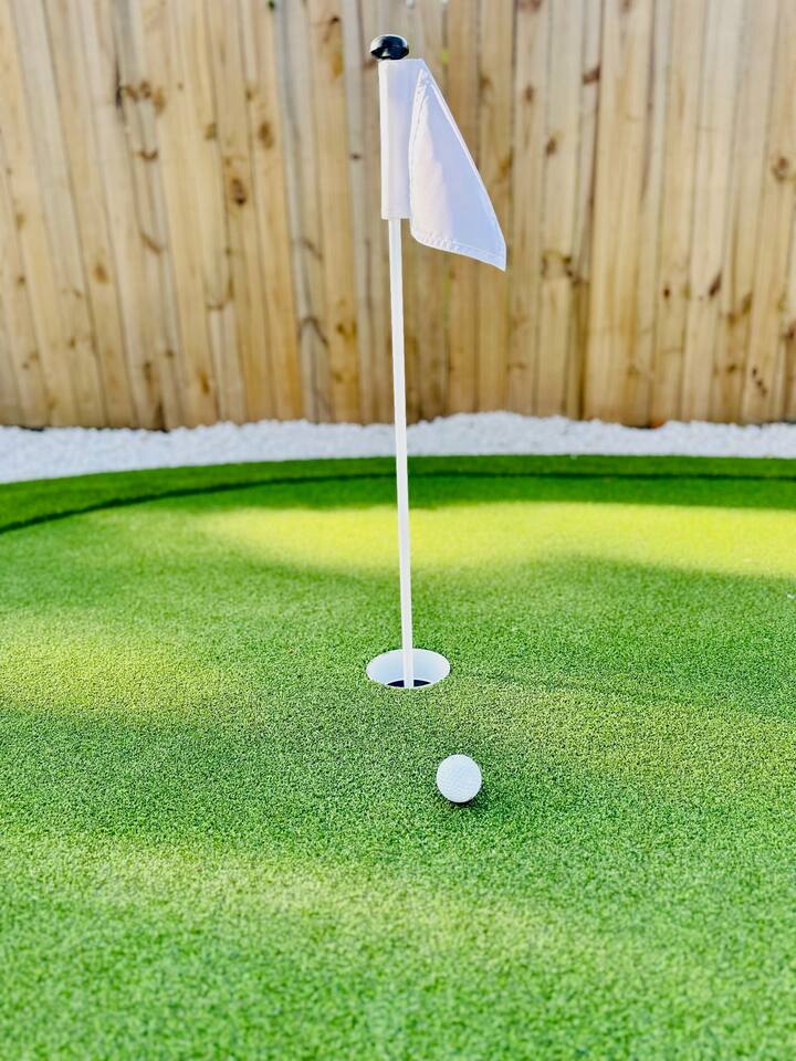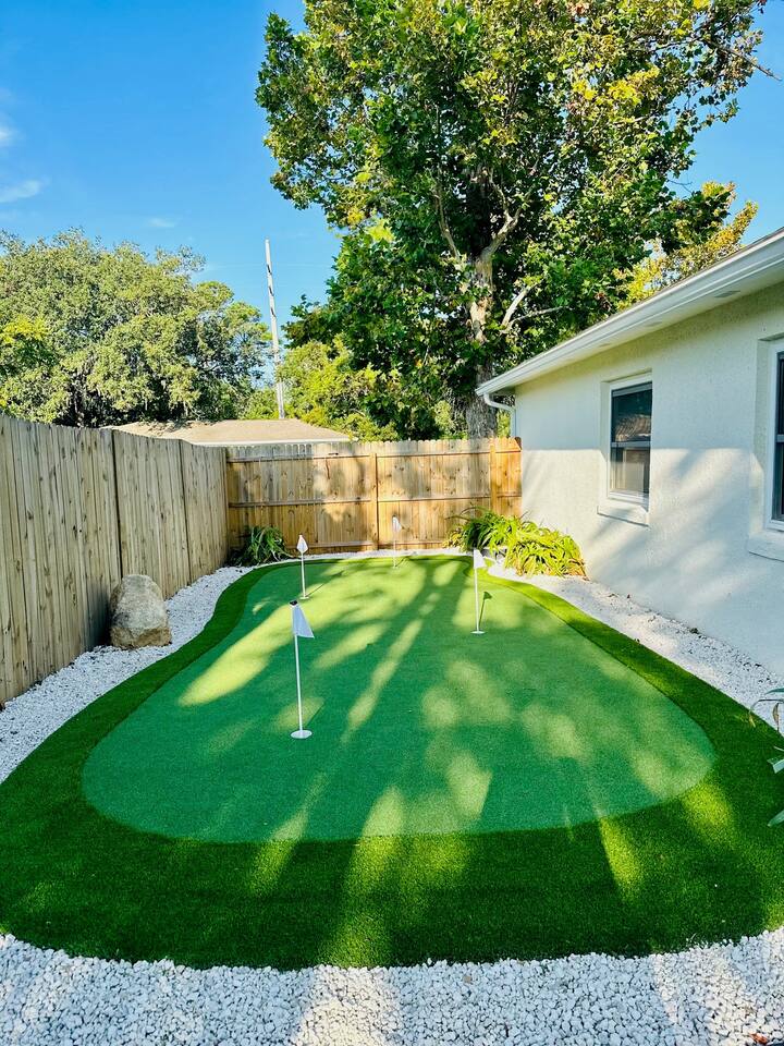 In this cozy home you can enjoy a good book, play a board game with the family, play video games, or sit back and watch your favorite movie or show on one of three large TVs. You can also enjoy the quiet backyard under the hanging lights on the comfortable couch, the large outdoor dining table or spacious hammock. Or you can take it up a notch and roast smores by the firepit, sinks some putts on the new putting green and cook a meal on the gas grill. Outdoor games such as bocce ball, cornhole and a giant Connect Four are provided, as well as four new beach cruiser bikes. Some of the included amenities are: *Brand new state-of-the-art putting green with putters and balls for children and adults * Smart TVs with access to Netflix, Disney+, ESPN+, Max, YouTube TV, Peacock, Paramount+ and Amazon TV *Brand New Playstation 5 with popular games (Spiderman 2, PGA Tour 2K25, Madden 25, FC25 and more) *Bedroom 1 - King, Bedroom 2 - Queen, Bedroom 3 - Two XL Twins. *Master Bath has large sauna shower and double vanity (plus high end shampoo and bath wash) *Complimentary plush robes *Huge backyard includes large paved patio, gas grill, outdoor dining table and chairs, firepit, Adirondack chairs, couch, outdoor shower, and hammock *New Peloton Bike in the garage to enjoy workouts either using the Cobia guest account or your own personal account (Delta clip-on shoes or sneakers). *Outdoor games, boogie boards and sports/beach equipment available for guests *Professional corn hole boards and life-size Connect 4 *An assortment of best-selling fiction and non-fiction novels *Fully fenced in yard with professional mosquito spray service so you can enjoy the backyard bug-free *Super high speed Wi-Fi (600 Mbps) *Coffee Pot, Keurig and French Press available - all K-Cups, coffee, cream, sugar provided *Smeg Electric Tea Kettle and assorted tea also provided *Indoor dining table has leaf to expand for 6 seats *Air Mattress, Pack-in-Play, BOB Strollers (single and double) and high-chair available upon request