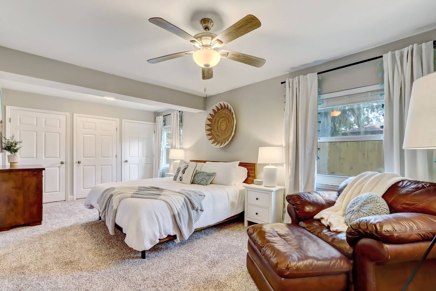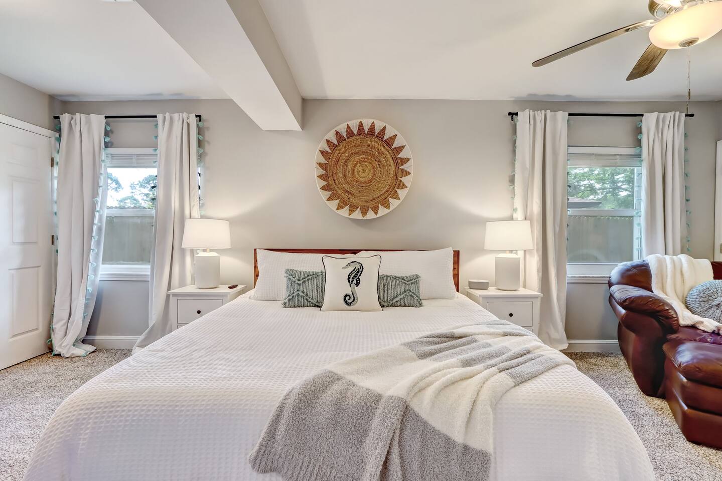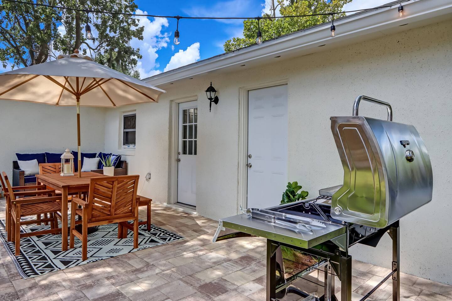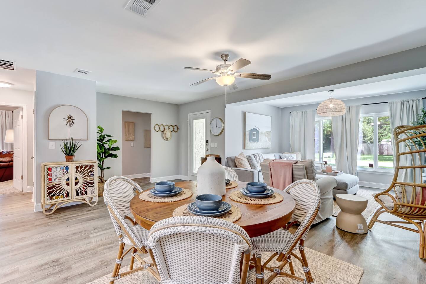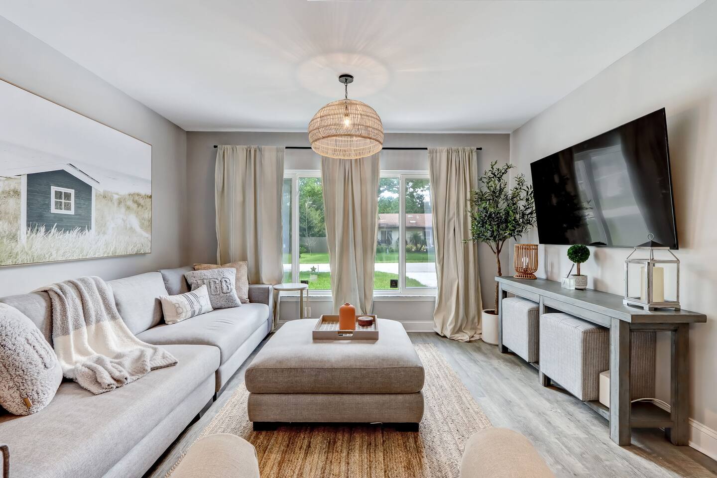 In this cozy home you can enjoy a good book, play a board game with the family, play video games, or sit back and watch your favorite movie or show on one of three large TVs. You can also enjoy the quiet backyard under the hanging lights on the comfortable couch, the large outdoor dining table or spacious hammock. Or you can take it up a notch and roast smores by the firepit, sinks some putts on the new putting green and cook a meal on the gas grill. Outdoor games such as bocce ball, cornhole and a giant Connect Four are provided, as well as four new beach cruiser bikes. Some of the included amenities are: *Brand new state-of-the-art putting green with putters and balls for children and adults * Smart TVs with access to Netflix, Disney+, ESPN+, Max, YouTube TV, Peacock, Paramount+ and Amazon TV *Brand New Playstation 5 with popular games (Spiderman 2, PGA Tour 2K25, Madden 25, FC25 and more) *Bedroom 1 - King, Bedroom 2 - Queen, Bedroom 3 - Two XL Twins. *Master Bath has large sauna shower and double vanity (plus high end shampoo and bath wash) *Complimentary plush robes *Huge backyard includes large paved patio, gas grill, outdoor dining table and chairs, firepit, Adirondack chairs, couch, outdoor shower, and hammock *New Peloton Bike in the garage to enjoy workouts either using the Cobia guest account or your own personal account (Delta clip-on shoes or sneakers). *Outdoor games, boogie boards and sports/beach equipment available for guests *Professional corn hole boards and life-size Connect 4 *An assortment of best-selling fiction and non-fiction novels *Fully fenced in yard with professional mosquito spray service so you can enjoy the backyard bug-free *Super high speed Wi-Fi (600 Mbps) *Coffee Pot, Keurig and French Press available - all K-Cups, coffee, cream, sugar provided *Smeg Electric Tea Kettle and assorted tea also provided *Indoor dining table has leaf to expand for 6 seats *Air Mattress, Pack-in-Play, BOB Strollers (single and double) and high-chair available upon request