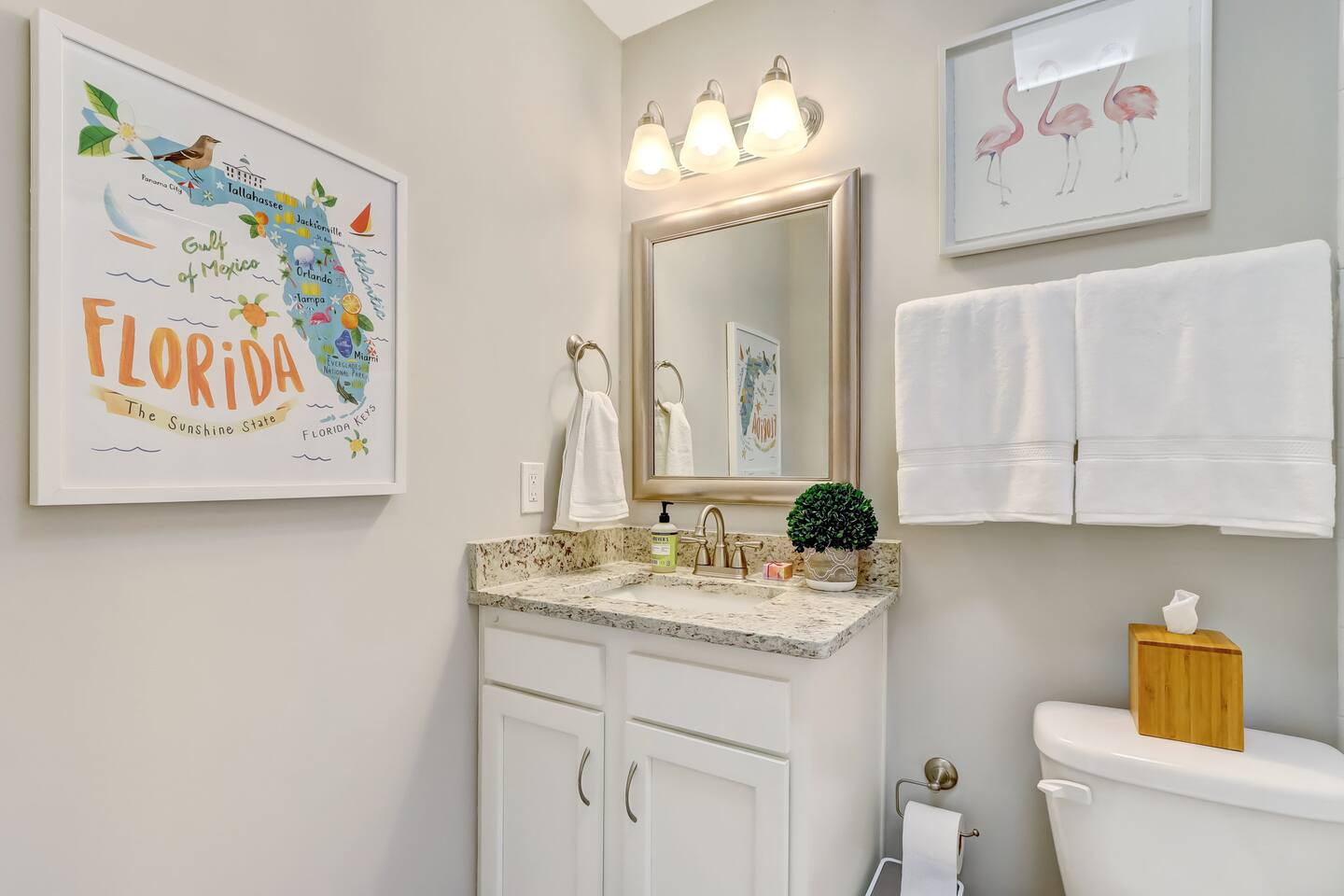 Welcome to Cobia Cottage in beautiful Ponte Vedra Beach! This spacious three bed/two bath house has everything you need to escape from everyday life. Bike to the beach and return to the refreshing outdoor shower, sink a putt or two or eat lunch al fresco on the large patio with gas grill; or just relax on plush furnishings and enjoy a movie on one of the huge smart HD TVs. The house sits only 1.5 miles from PV beach, a short drive to Jacksonville Beach, and a 10 min drive to the Mayo Clinic.